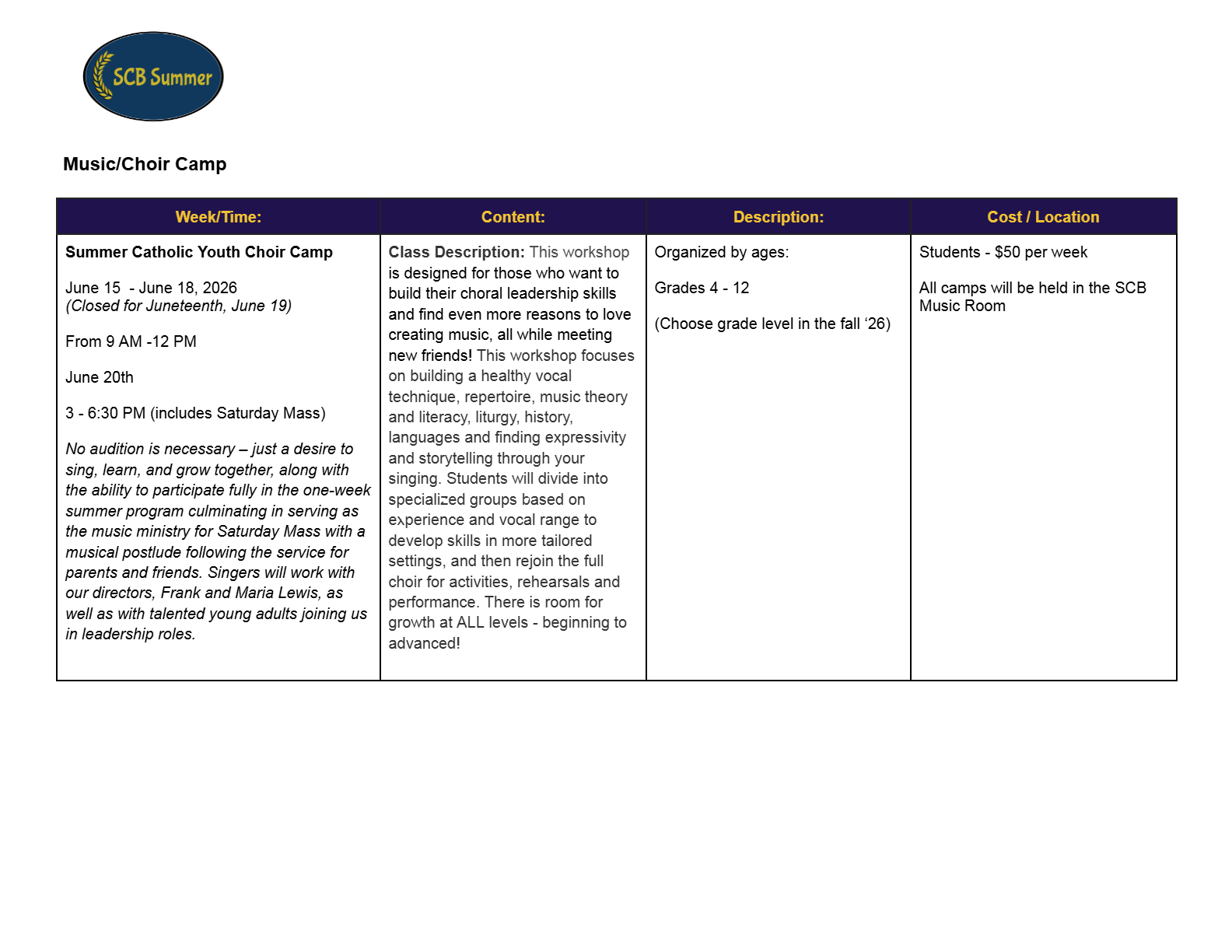 Register for Summer Music/Choir Camp Here