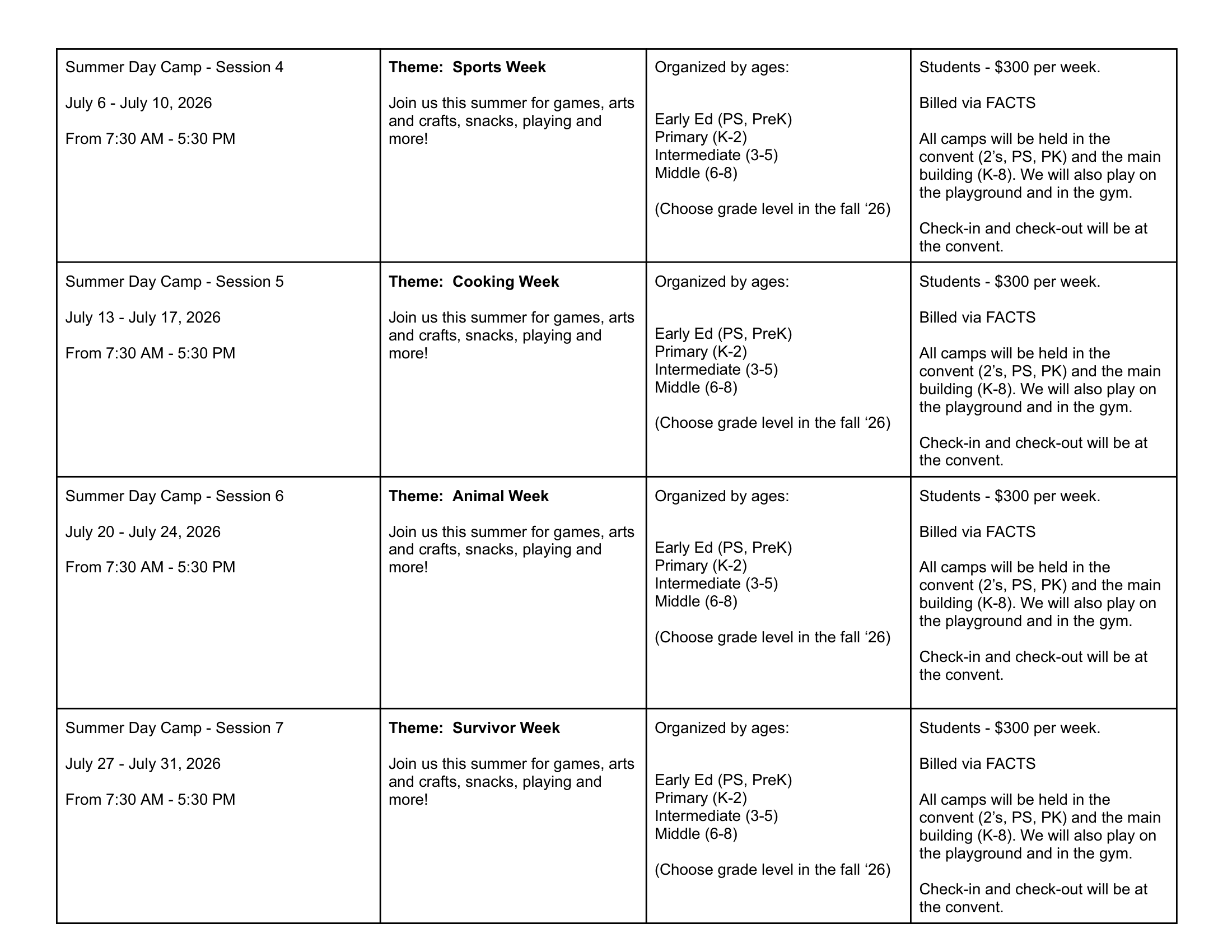 2026 Summer Camps